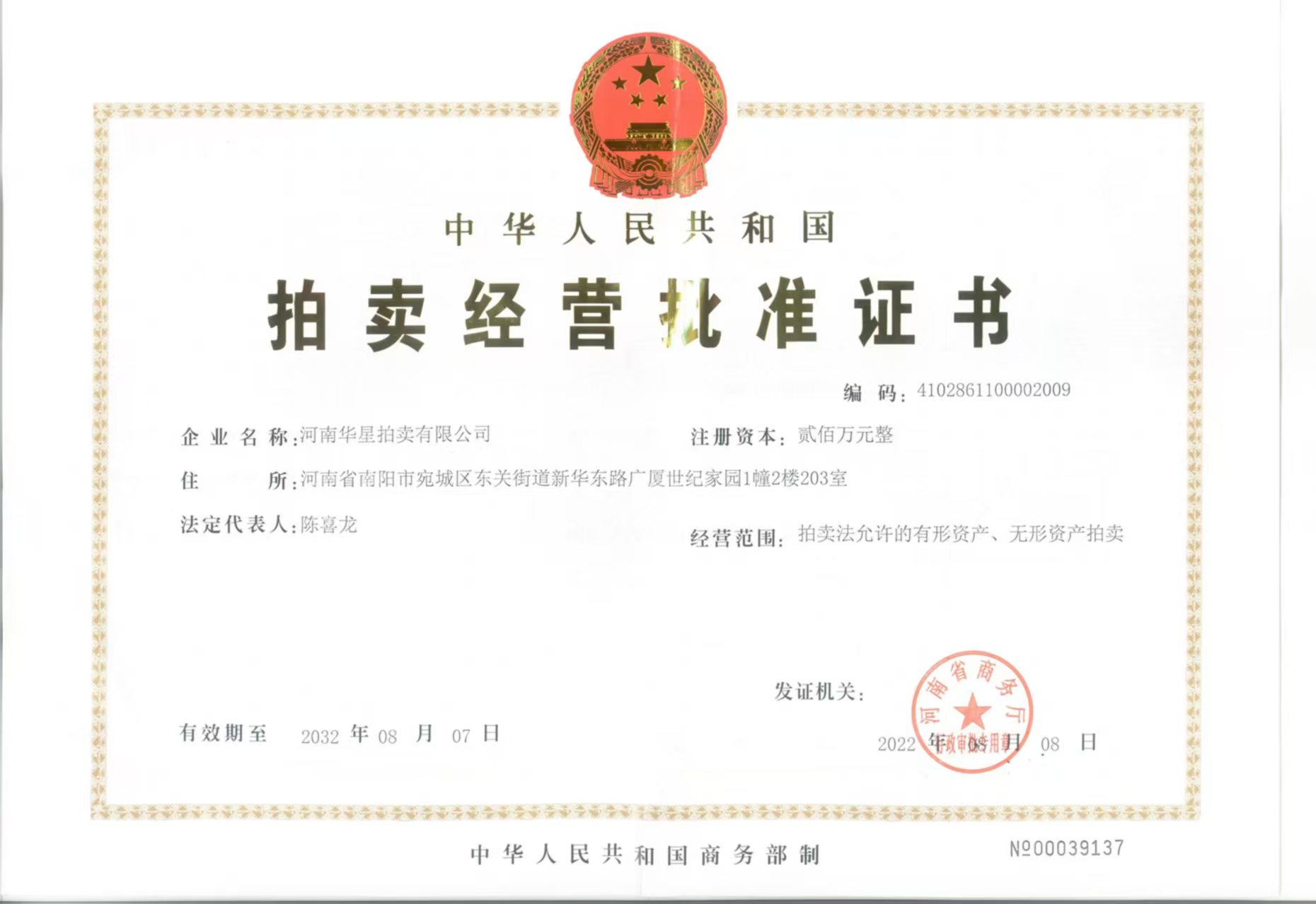 拍賣經(jīng)營批準(zhǔn)證書 |